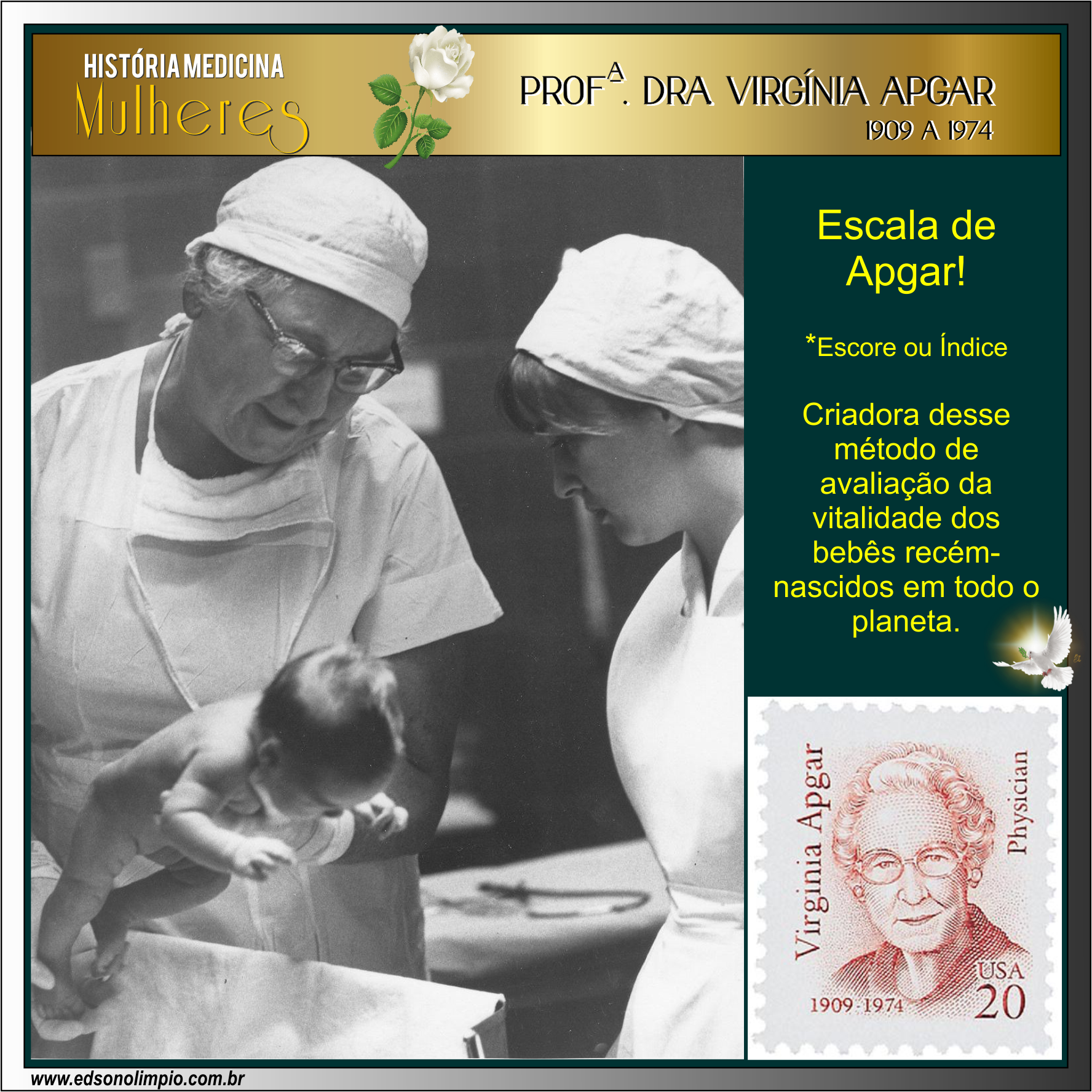 Criadora desse método de avaliação da vitalidade dos bebês recém-nascidos em todo planeta.