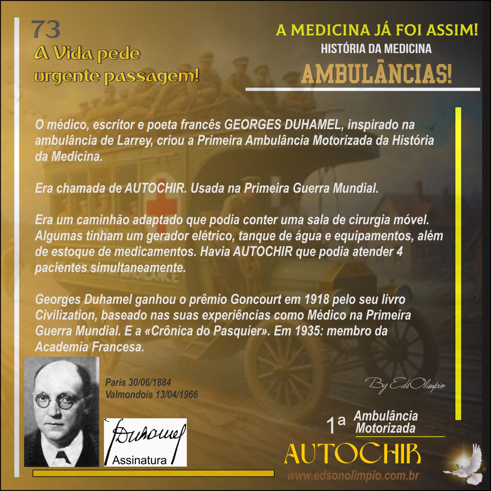 PRIMEIRA AMBULNCIA MOTORIZADA* Foto de Edson Olimpio * Medicina e Escritor
