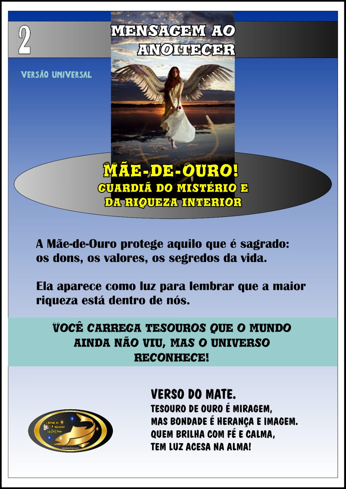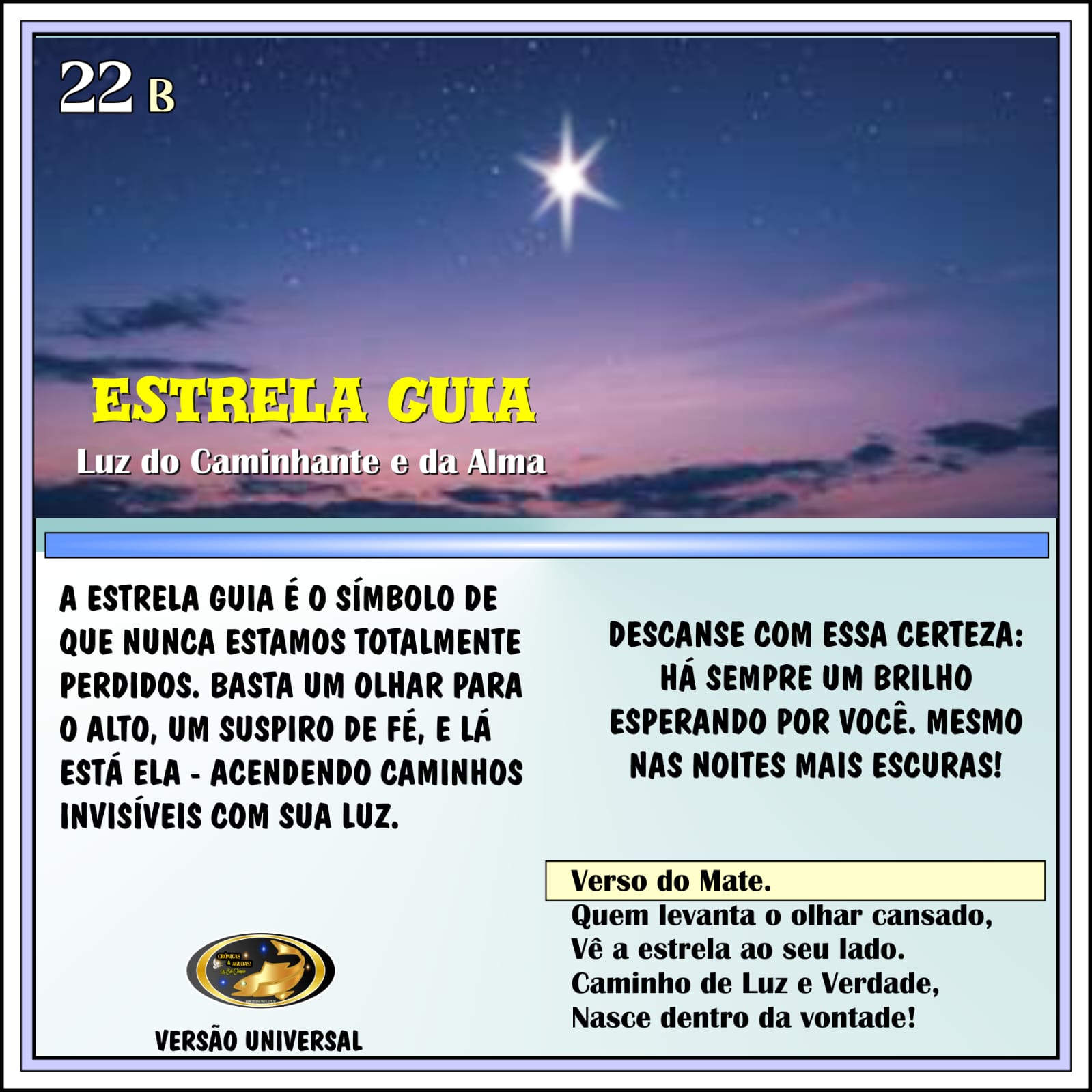 《 "Sua Tarefa Especial é a de Confiar na sua Força Interior e na Proteção Divina que acompanha aqueles que são Puros nos seus Atos e Intenções.