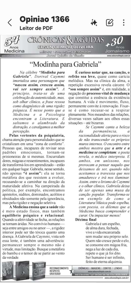 Modinha para Gabriela * Foto de Edson Olimpio * Medicina e Escritor