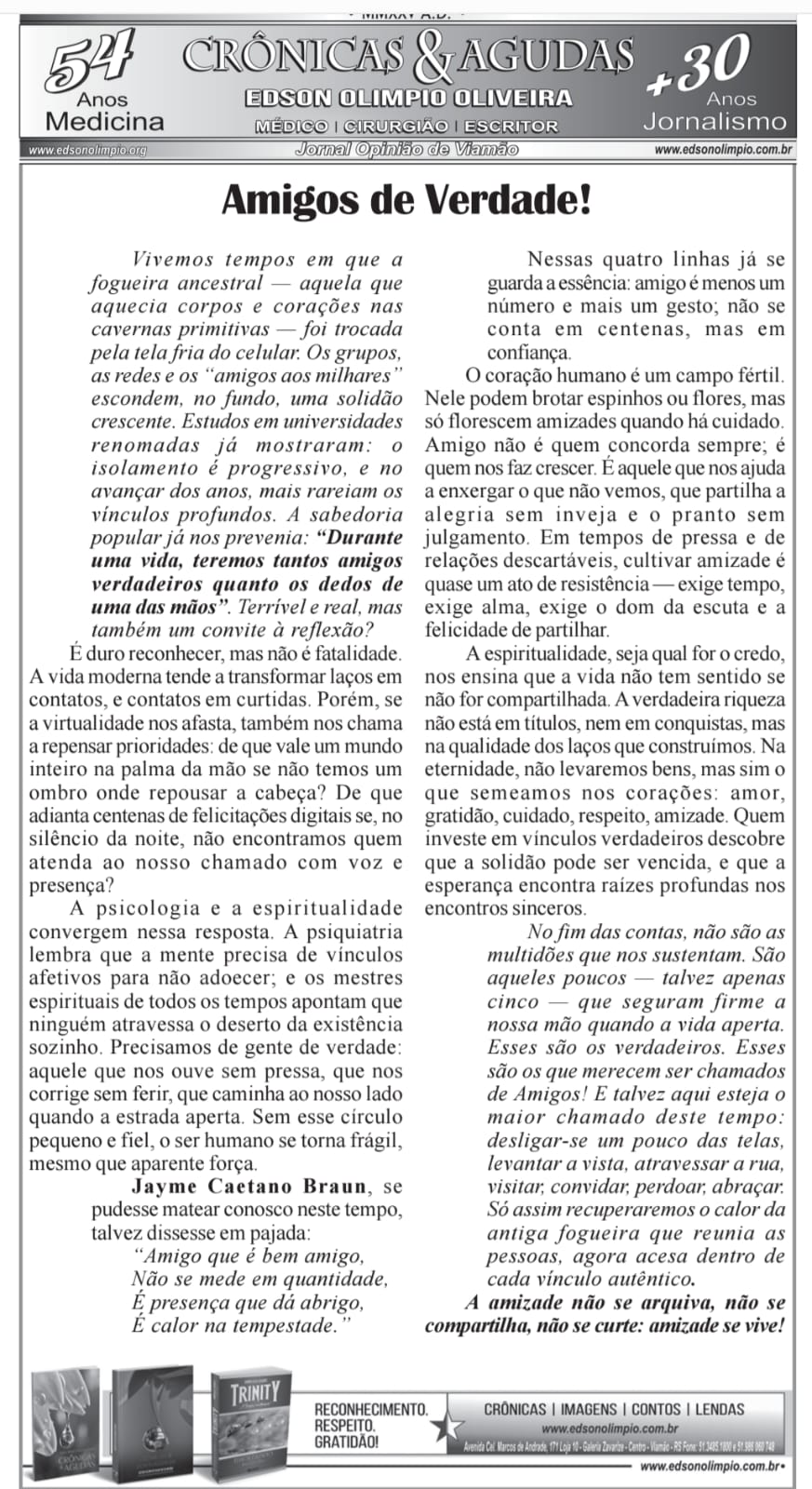 AMIGOS DE VERDADE * Foto de Edson Olimpio * Medicina e Escritor