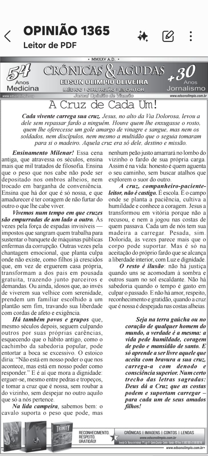 A CRUZ DE CADA UM * Foto de Edson Olimpio * Medicina e Escritor